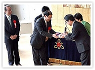 「国宝・金印レプリカ」「金印BOX」贈呈式